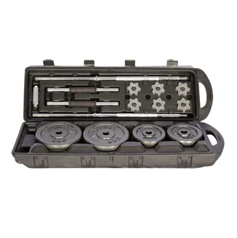 The Fitness 50 KG Barbell / Dumbbell set is designed to work out the whole body, from legs and back when squatting to arms and abdominals when performing chest presses.